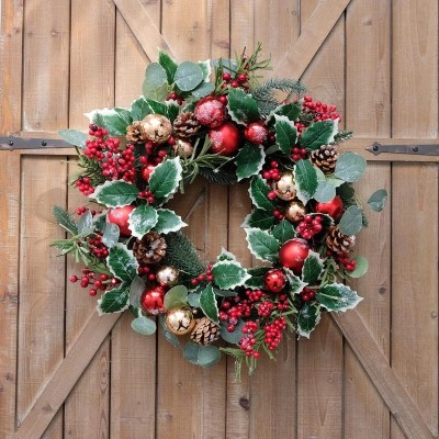 Christmas Red Fruit Ribbon Door Decoration with White Edge Leaves | Home Decor