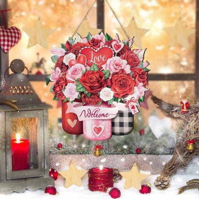 Romantic Heart-Shaped Rose Wood Hanging Ornament for Valentine's Day Decoration|Home Decor & Ornaments