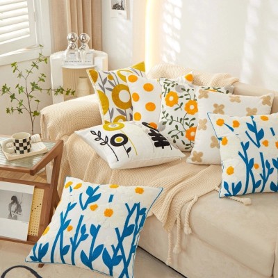 Minimalist Floral Cotton Linen Throw Pillow Cover for Sofa Couch Decor|Home Decor & Pillows