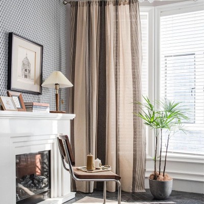 Yi Manqi Coffee Striped Semi-shading Kitchen Curtain Cotton Linen Yarn-dyed American Style|Home Decor Curtains