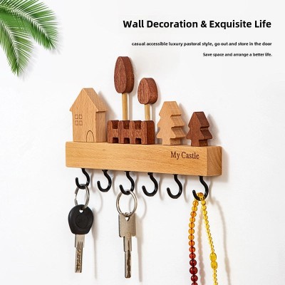 Nordic Solid Wood Wall-mounted Key Hook Punch-free Creative Storage Rack for Entrance|Home Organization
