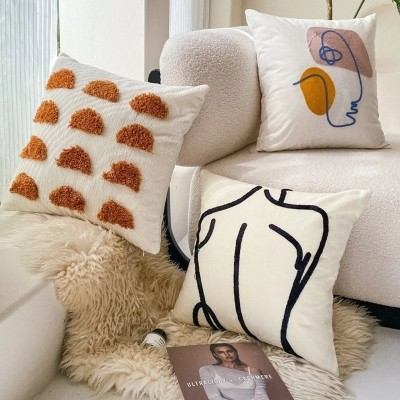 Embroidered Cotton Floral Cushion Cover Soft Decorative Pillow Case for Sofa Bedside Home Decor|Home Decor & Pillows