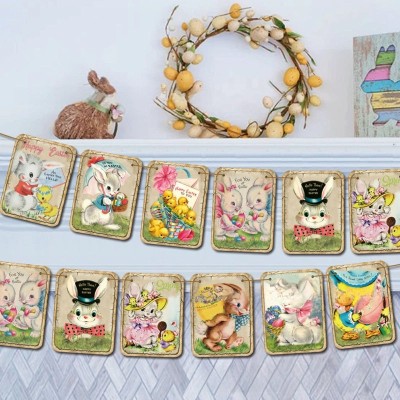 Retro Easter Bunny Wall Flag with Colorful Eggs Spring Decoration|Home & Garden Decorations