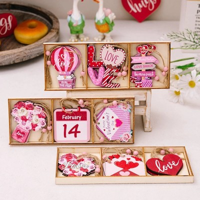 Romantic Heart Shaped Wooden Hanging Ornaments for Valentine’s Day Holiday Decor|Home Decor