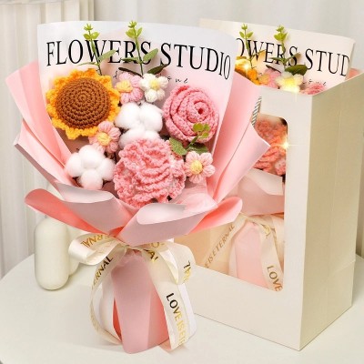 Romantic Valentine’s Day Rose Yarn Artificial Flowers Bouquet|Home Decor Artificial Flowers