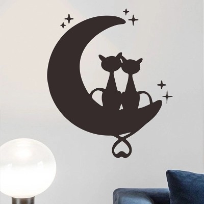 Minimalist Moon and Cat Wall Decals for Bedroom and Porch | Home Decor Wall Stickers