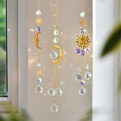 Radiant Sun and Moon Crystal Pendant Wall Hanging|Home Decor