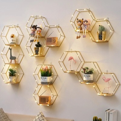 Wrought Iron Nordic Hexagon Wall Shelf Decorative Hanging for Home Bedroom Dining Room|Home Decor Wall Art
