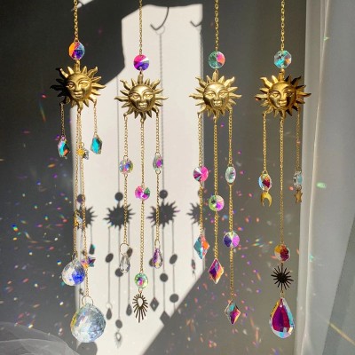 Minimalist Sun Star Moon Crystal Metal Suncatcher Wind Chime | Home Decor Wall Art