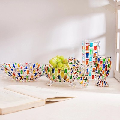 Hand Painted Colorful Vase and Woven Pattern Fruit Plate with Lid, Candy Jar, Painted Glass Juice and Whiskey Wine Glass|Home Decor & Drinkware