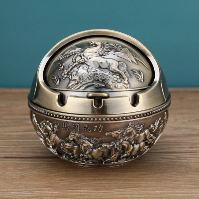 Vintage Elephant Peacock Rose Metal Ashtray Decorative Ornament|Home Decor & Accessories