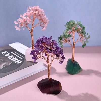 Handcrafted Elegant Tree Ornament with Natural Gemstones and Copper Wire | Home Decor & Handmade Accessories