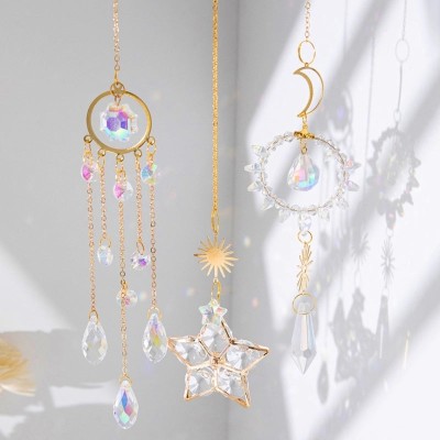 Minimalist Star and Moon Crystal Metal Suncatcher Wind Chime for Home Décor | Home Decor & Accessories