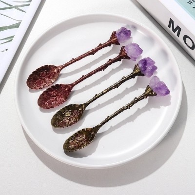Natural Amethyst Flower Copper Spoon with Long Handle | Home Decor & Kitchen Accessories