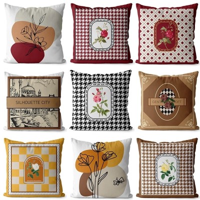European Retro Floral Pillowcase with Geometric Plaid Design|Home Decor Cushions