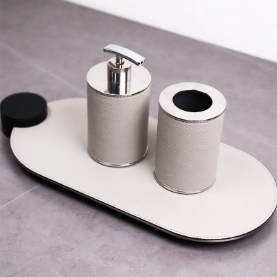 Modern European Soft Stainless Steel Leather Bathroom Set Soap Dispenser Toothbrush Holder 4-Piece Home Decor|Bathroom Accessories