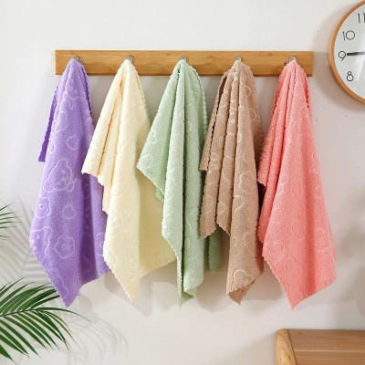 Soft Coral Fleece Embossed Bear Face Towel Quick-Dry Absorbent Cartoon Design|Home & Living Towels