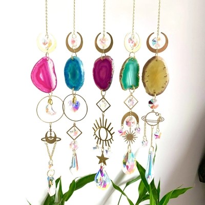 Minimalist Star and Moon Crystal Pendant with Water Droplets | Jewelry & Accessories