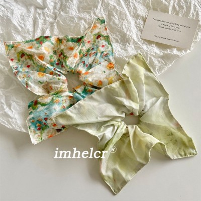 Women's Vintage Cloth Scarf Hair Tie Accessory Green Painted Flower