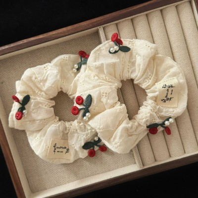 Girls Sweet Cloth Ponytail And Bun Hair Ties Red Cherry Lace