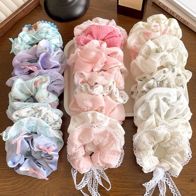 Women Daily Oversized High Elastic Lace Hair Scrunchie Elegant Floral