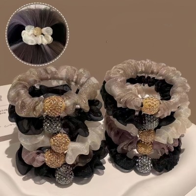 Women's Crystal Glass Hair Ties Leather Strap Bun Ponytail Bands Clear