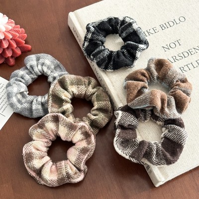 Women's Retro Autumn Winter Polyester Hair Scrunchie Pink Lattice