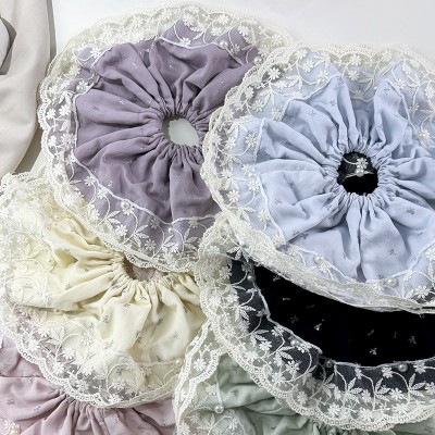 Women's Pearl Scrunchie Ponytail Tie Ditsy Floral Embroidered Lace