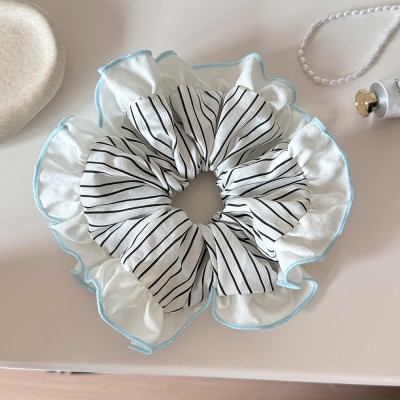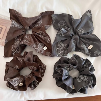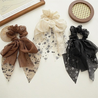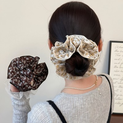 Women's Spring Korean Soft Gauze Hair Tie Black Ditsy Floral