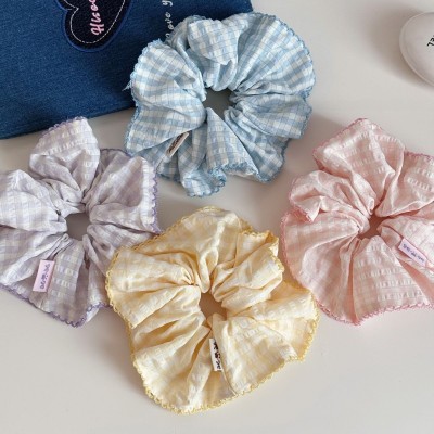 Women's Soft Cloth Spring Hair Tie Accessory Simple Green Plaid
