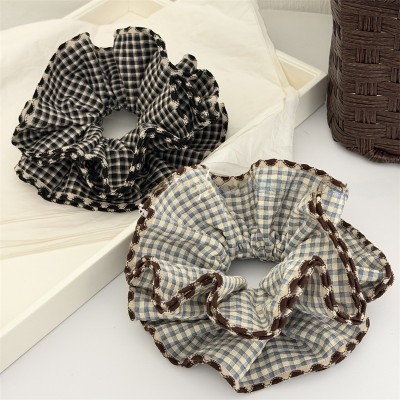 Women's Vintage Soft Cloth Hair Tie Spring Season Accessory Black Plaid