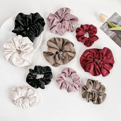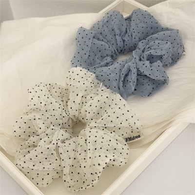 Women's Spring Soft Cloth Hair Tie Rubber Band Black Polka Dots