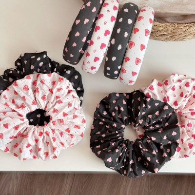 Women's Valentine Fabric Elastic Hairband Scrunchies Rose Pink White Black
