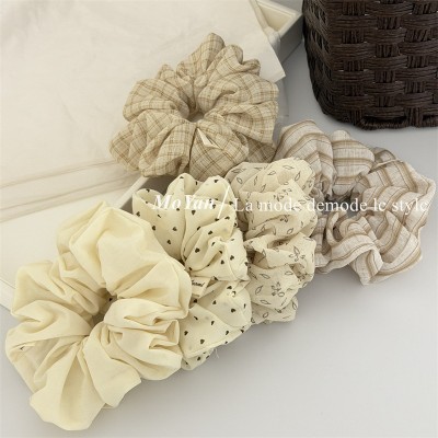 Women's Soft Cloth Daily Hair Tie Scrunchie Beige Solid Color