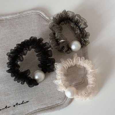 Women's Elegant Pearl Gauze Summer Hair Scrunchie Black Grey Beige