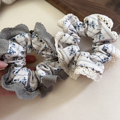Women's Spring Casual Cloth Scrunchie Hair Tie White Lace Polka Dots