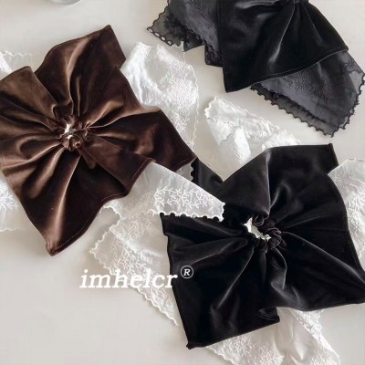 Women Vintage Velvet Lace Scarf Headband Daily Hair Tie Solid Color