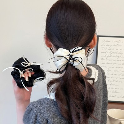 Women's French Style Elegant Spring Lace Bowknot Hair Tie Black