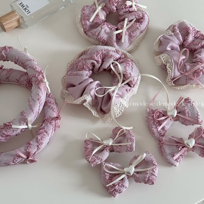Women's Sweet Spring Lace Bow Tie Hairpin Accessory Pink Beige Heart