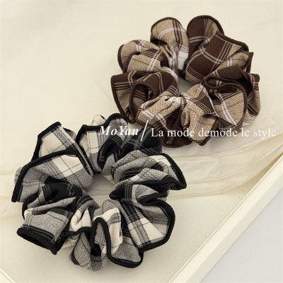 Women's Spring Retro Cloth Scrunchie Hair Tie Grey & Black Plaid