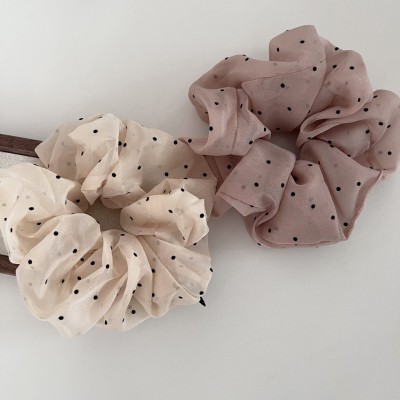 Women's Summer French Style Cloth Hair Tie Apricot Polka Dots