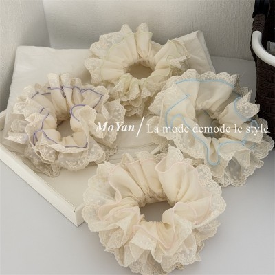 Women Fluffy Cloth Sponge Bun Scrunchies Elastic Ponytail Ties Creamy