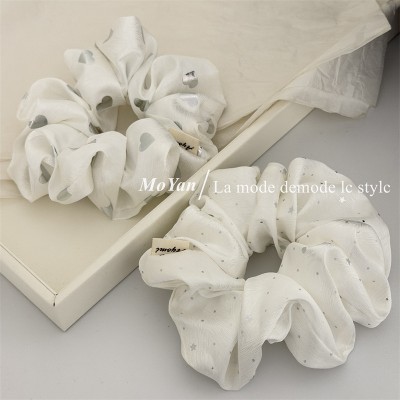 Women's Soft Cloth Heart Shaped Hair Tie For Daily Wear Silver Polka Dot