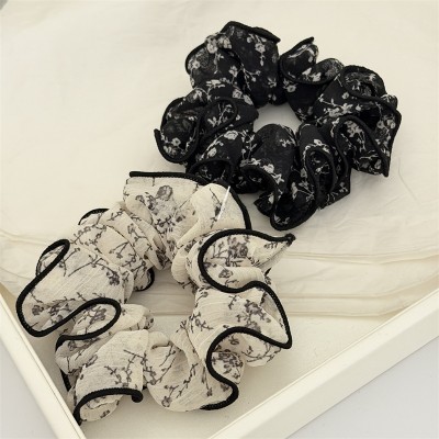 Women's Soft Chiffon Spring Hair Tie Scrunchie Beige Ditsy Floral