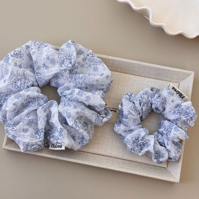 Women's Sweet Daily Satin Hair Tie Scrunchie Blue Flower Print