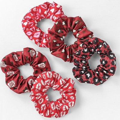 Women's 5-Piece Satin Elastic Hair Ties Valentine Rose Heart Lips Print