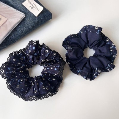 Women's Autumn Retro Cloth Hair Tie Navy Blue Ditsy Floral