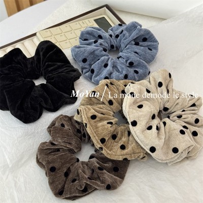Women's Versatile Elegant Cloth Hair Ties Retro Flocking Polka Dot