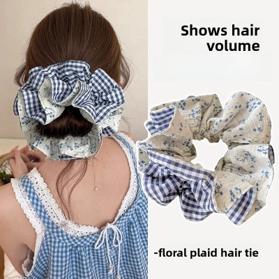 Women's Elegant Cotton Hair Ties Headscarves Blue Plaid Floral