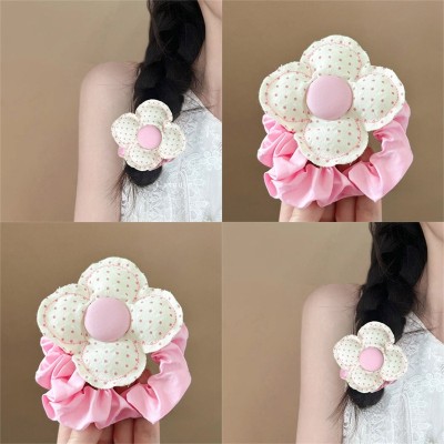 Women's Sweet Spring Fabric Hair Scrunchie Pink Ditsy Floral Polka Dots